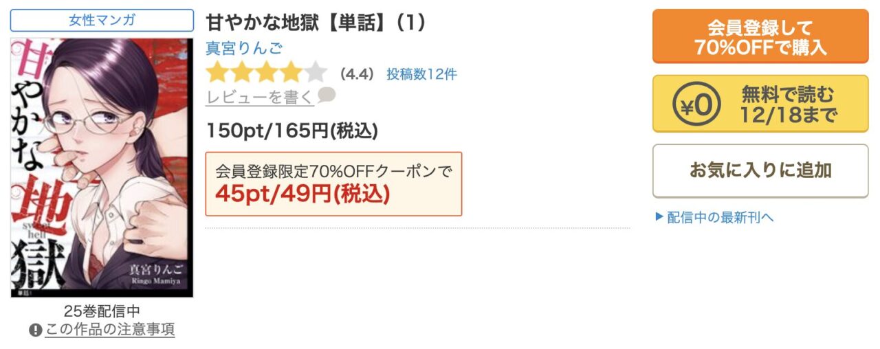 もちろん、他のサイトでも『甘やかな地獄』は配信されています。例えば、ブックライブ(BookLive!)は「クーポンガチャ」という毎日引けるガチャがあり、運が良ければ全作品に使える割引クーポンが手に入ります。Vポイントを貯めている方にも使いやすいサイトですね。