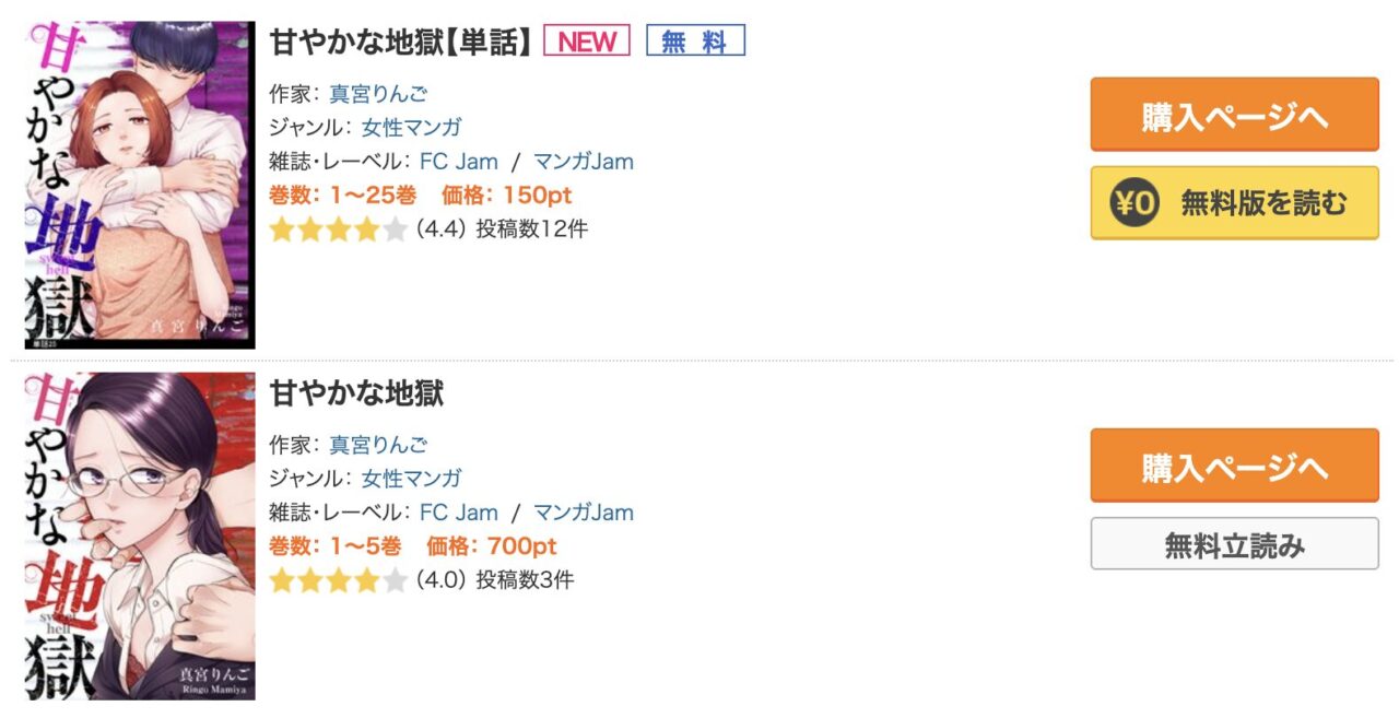 『甘やかな地獄』を購入する際に注意したいのが、「単話版」を買うか、「単行本版」を買うかという点です。私のおすすめは、断然「電子単行本版」です。