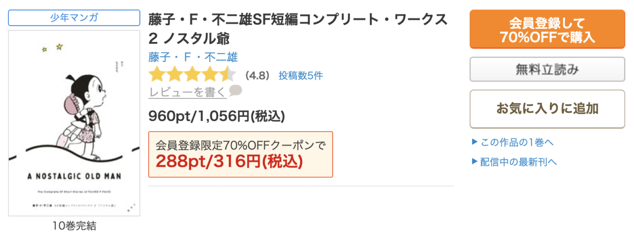 そして何より、劇画オバQが収録されている『SF短編コンプリート・ワークス 2』のような「1冊単価が少し高めな作品(1,000円以上)」を買うのに、シーモアは最も適した仕組みを持っています。その理由を深掘りして解説します。