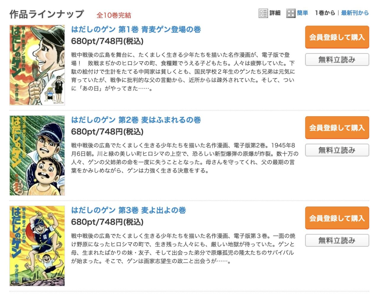 - はだしのゲンを全巻無料で読める正規サービスはない