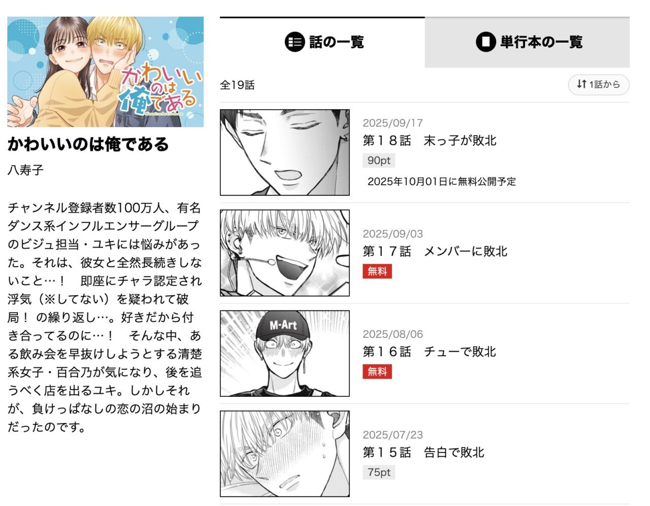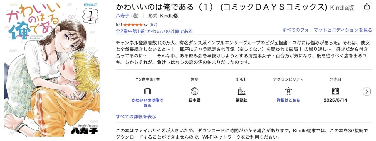八寿子先生はこれまで主に小学館の『ベツコミ』などで活躍されてきましたが、本作『かわいいのは俺である』は講談社からの出版となります。講談社が運営するコミックアプリ&Webサイト「コミックDAYS」にて、2025年1月より連載が開始されました。人気作家の新天地での挑戦という点でも、注目を集めている作品です。