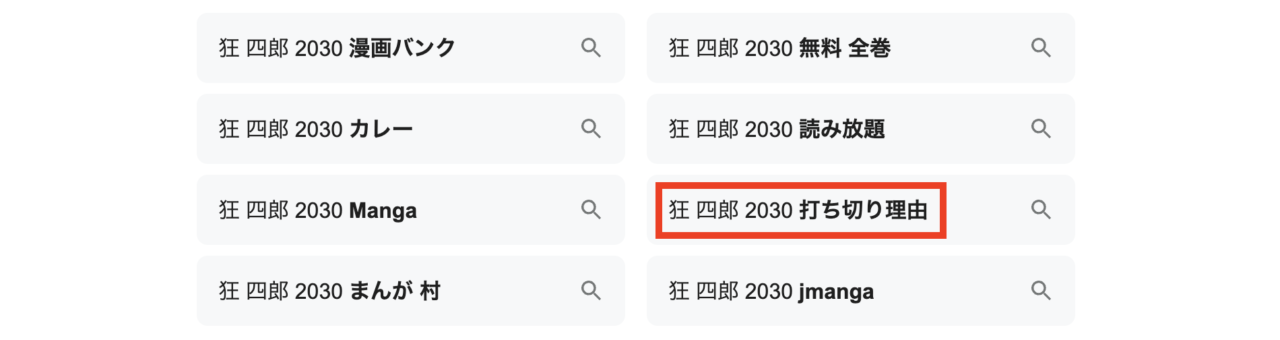ネット上で検索すると「狂四郎2030 打ち切り」といったワードを見かけることがあります。これを見て「物語が途中で終わっているのではないか?」と不安になる方もいるでしょう。