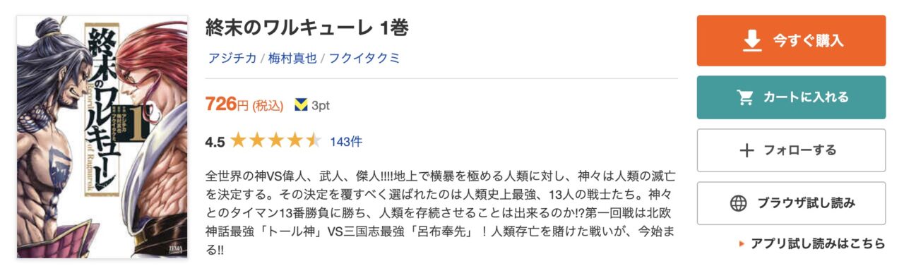 • 『終末のワルキューレ』を読むならコミックシーモアが最もおすすめ