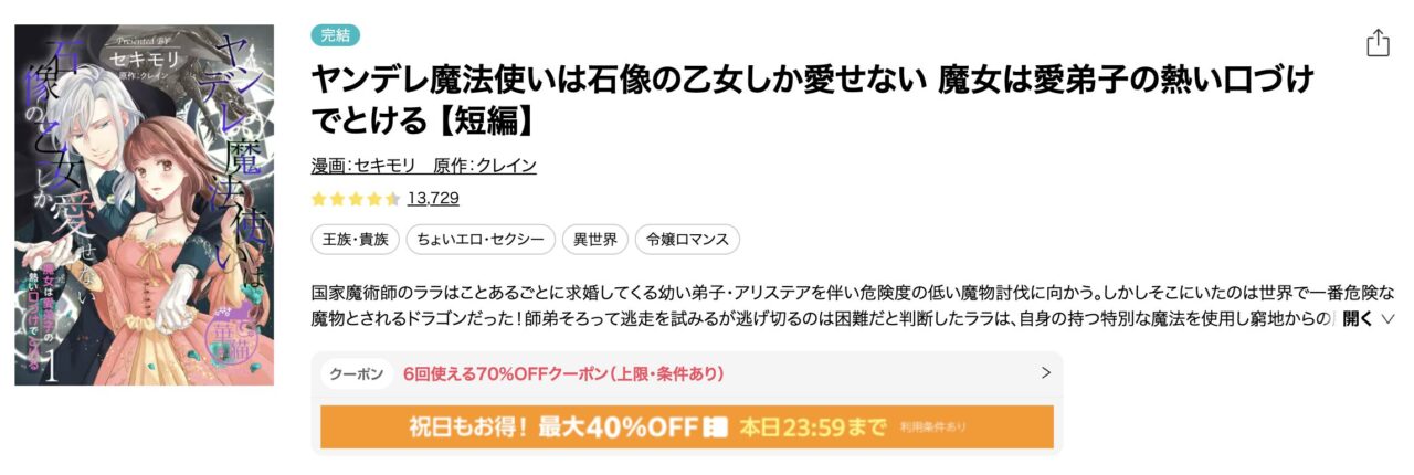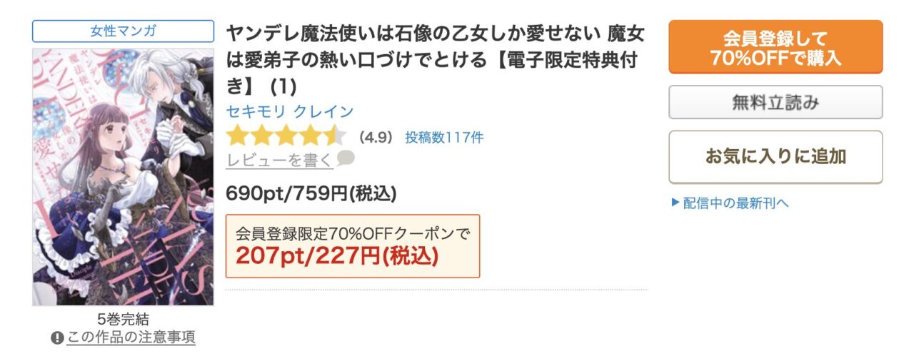 大ヒット異世界ファンタジー「ヤンデレ魔法使いは石像の乙女しか愛せない」について、どこで読めるのか、最もお得な方法をお探しではないでしょうか。
